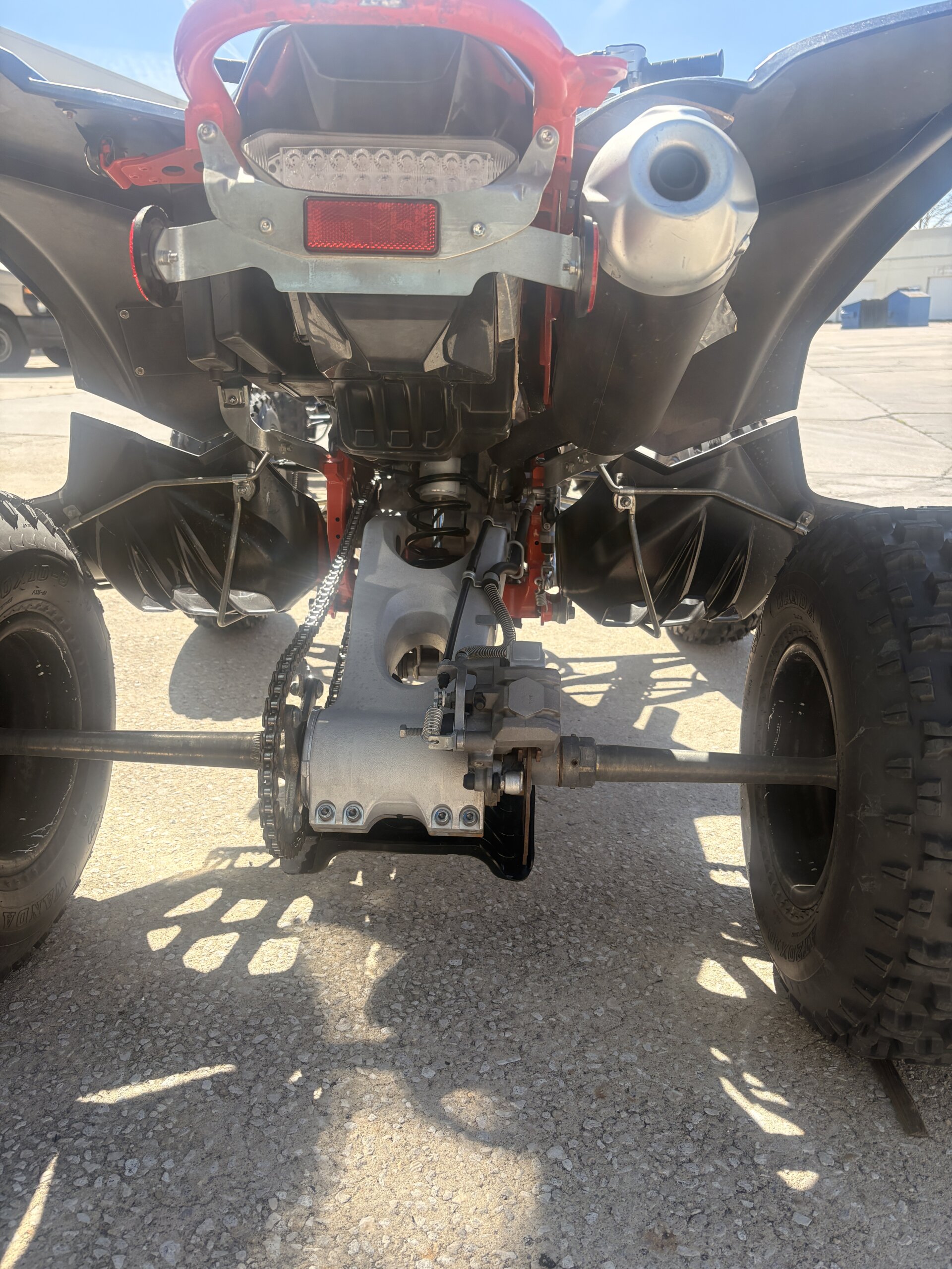 Designed with motocross competition in mind, the YFZ450R features a lightweight aluminum/steel hybrid chassis that provides exceptional strength while keeping the machine agile and responsive. The independent double-wishbone front suspension and adjustable rear shock deliver nearly 10–11 inches of travel, giving riders superior control on jumps, corners, and rough terrain.