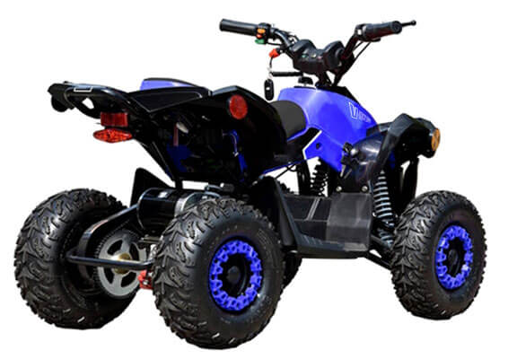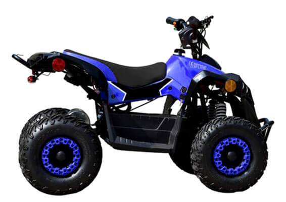 The E-Volt 1000W is a beginner-friendly electric quad perfect for kids and teens. With a powerful 1000W brush motor, 3-speed switch, and spring-loaded suspension, it offers both control and performance in a compact, colorful package.