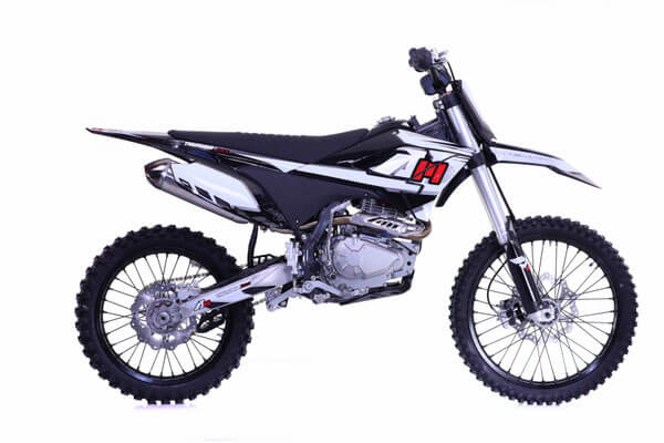 It features fully adjustable hydraulic front and rear suspension—providing long-travel absorption and comfort over rough terrain. The dual disc brake system includes oversized rotors for enhanced stopping power. Built on a rugged steel frame, it features high-end components like forged aluminum clamps, a waterproof harness, and a stainless steel exhaust.